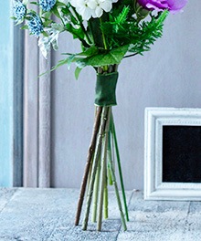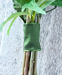 ・茎を束ねた支点の位置に付属のリボンを巻きグルーで留めます。